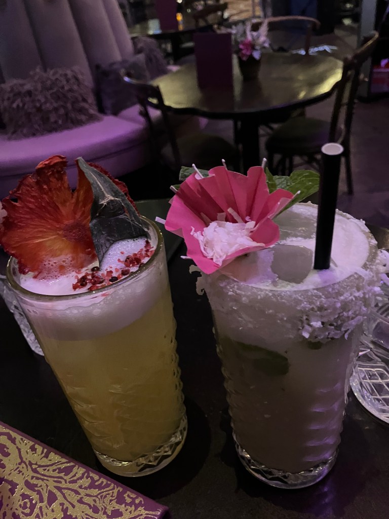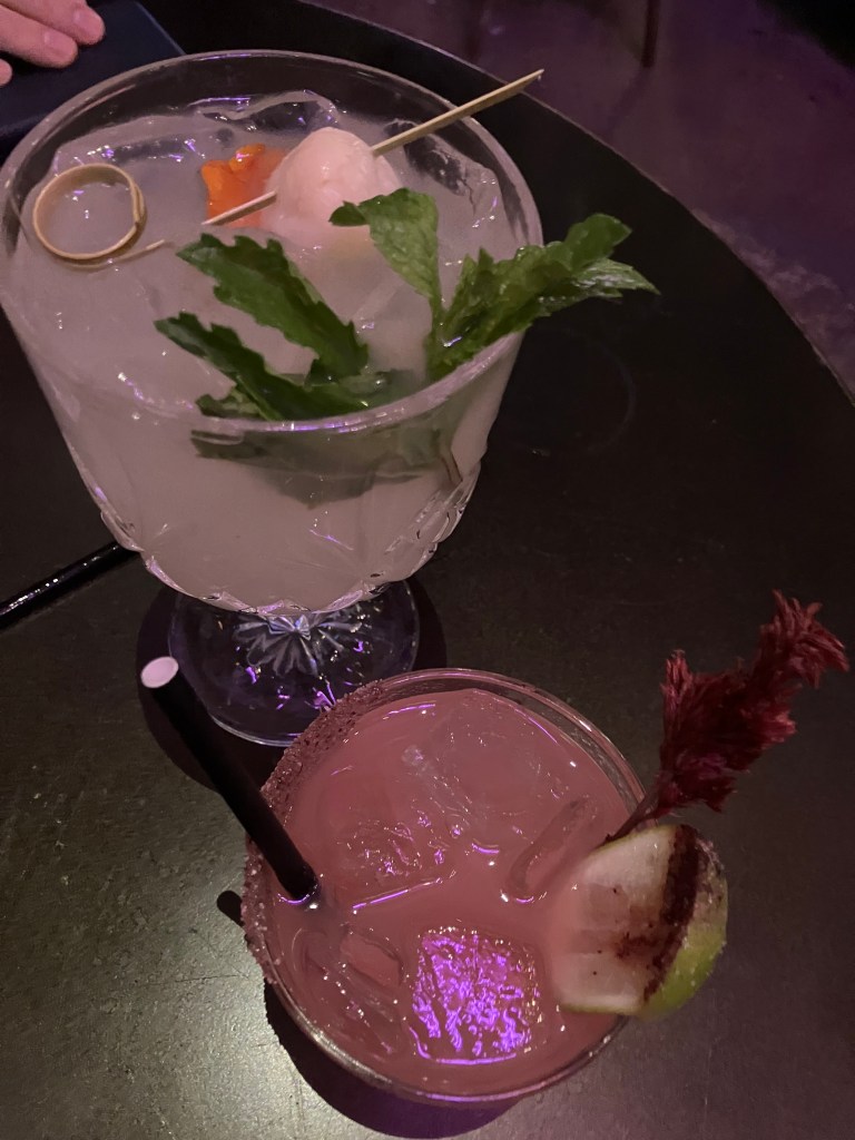 I like to book the spa on the day after we arrive. This way I can bring some water back to our room that lasts the entire trip plus they have a little snack mix that Christopher loves and oranges/bananas for me. The spa at the Cosmo is gorgeous. There is a large hot tub which is the size of a pool with 5 lounge chairs to relax on while you await your service or for after your service. There’s a cooling room, a sauna and steam room available too. I booked the aromatherapy massage for 80 minutes and it was glorious. I typically have a male masseuse because I don’t have a preference. I slip in and out of sleep during the massage and it’s so nice and relaxing. I usually book for the mornings but this trip I decided to book for 2:30 so that I could shower after and get ready for our dinner. So when I woke up, I left Christopher sleeping and went out shopping. I stopped to grad coffee from District – I order the secret honey lavender oat latte – and I headed over to Bellagio. I wanted to look at Prada and Gucci. I got there 5 minutes before they opened so I waited and walked around Prada first. There was a cute little pouch that would match the nylon bag I already own but it didn’t come in black. There was also this great gold necklace with a charm of a bag I own on it. I moved on the Gucci and had the best time with my sales lady. We chatted and laughed for over an hour, showing photos of our dogs, talking about the real housewives while she showed me some bags. I’m very interested in the Jackie red little sling/cross-body bag but instead went with a tiny black cross-body with a gold chain. The red one is still in my sights. Leaving Gucci, Christoper woke up and asked about lunch and I told him I’m heading over to the Wynn because they’ve put in a Loewe store. He said he would walk over to Casino Royale to play the Goonies and meet me at the room. I walked to the Wynn, such a beautiful hotel and found the Loewe store. I was first introduced to Loewe in New York in 2021 on our honeymoon and their products are stunning and unique. I’ve been looking to get a small puzzle bag – I have a mini tricolour puzzle – and the store had the colour combination I’ve been searching for. It’s nice to see it in person vs online sometimes. Plus then I can get a size estimate and feel of their clothes, etc too. So I purchased the bag and sunglasses. I walked over the overpass to Treasure Island to catch a cab back to Cosmo and found Christopher resting in bed. He was feeling some stress and neither of us had eaten yet, so I let him rest while I went down to Eggslut to get us lunch. We ate together on the couch and chatted about options to help reduce his stress. I went down to my massage and he went on a mission to find our candy bags and then rested again until I returned. We got ready and went to STK for happy hour. We just wanted a couple drinks – the hostess ladies sent us up to the second bar since we weren’t having food and we had two yummy happy hour drinks before moving on to Hattie B’s and grabbing a fried chicken sandwich and chicken tenders to eat in the room. We love having a casual room dinner date. Last time we did it we watched Game 7 of the Stanley Cup Finals. Later, we walked over to Vanderpump at Caesars Palace for a couple cocktails (featured below) before coming back to the Cosmo for a little investing. Our room has a deep jacuzzi bathtub at the window looking out at the fountains so I ended my night there in bubbles.